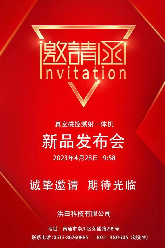 KOTA Technology planlegger å holde en ny produktlanseringskonferanse for vakuummagnetron sputtering integrert maskin på fabrikken til Kota Technology (Jiangsu) Co., Ltd. (nr. 299, Rongsg Road, Chongchuan District, Nantong City) på 9:58 på fredag 28. april, 2023. Vi ovenestet av relevante lokale kundene til å gjøre det mulig å snakke om lokale kundes Companys Companyer til å være med media. Konferanse.